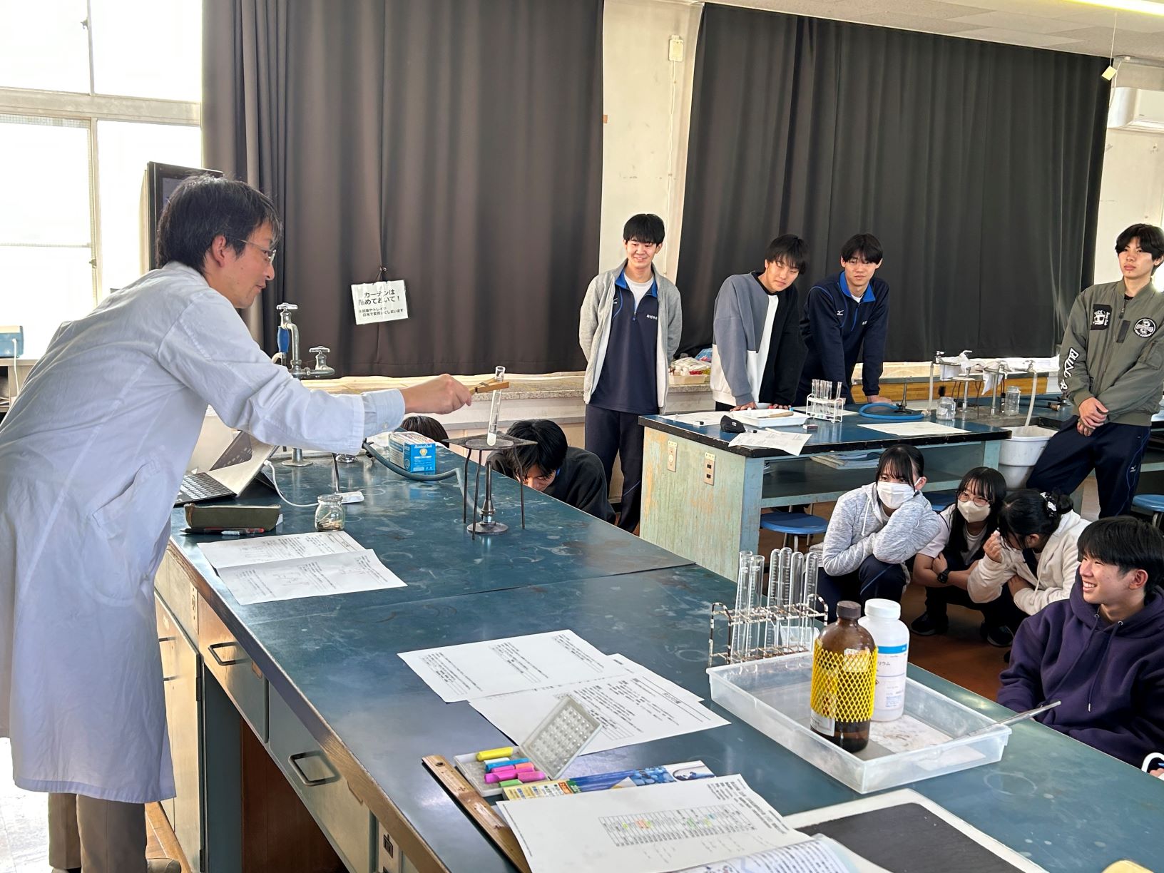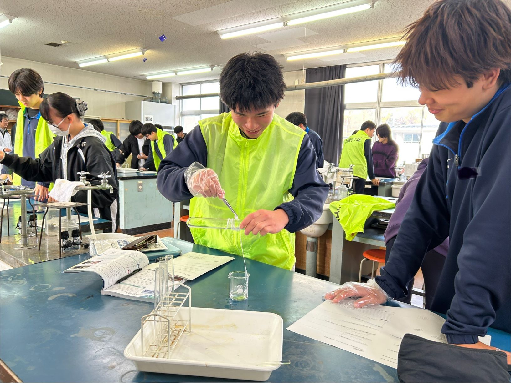 「タンパク質の性質」では、危険な薬品を扱う際には演示実験に置き換えたりする等、安全に配慮しながら実験をしました。
