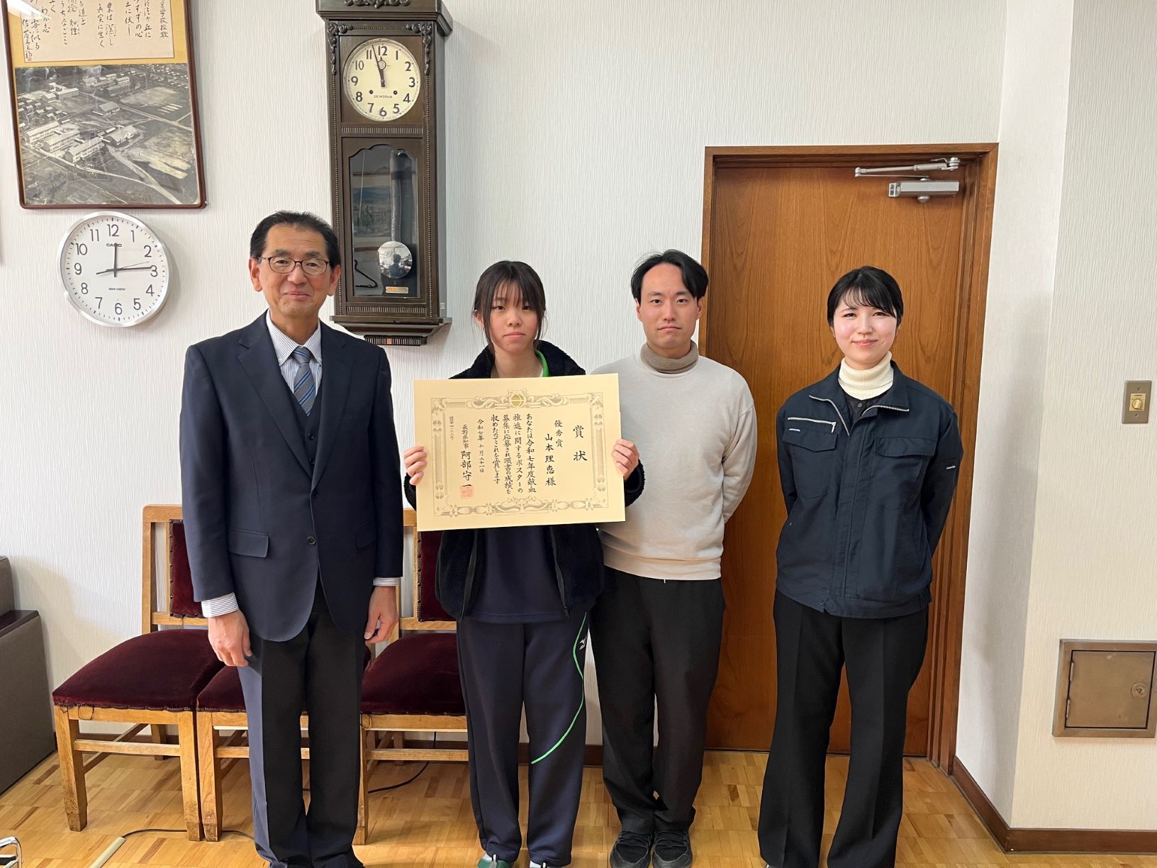 さらに、令和七年度献血推進に関するポスターを描いた一年生の山本理恵さんが優秀賞を受賞しました。