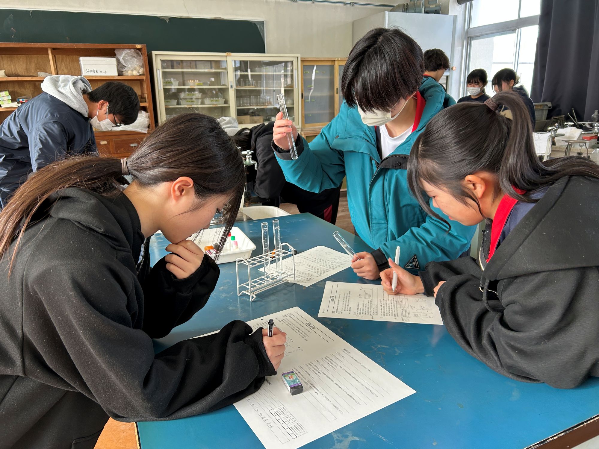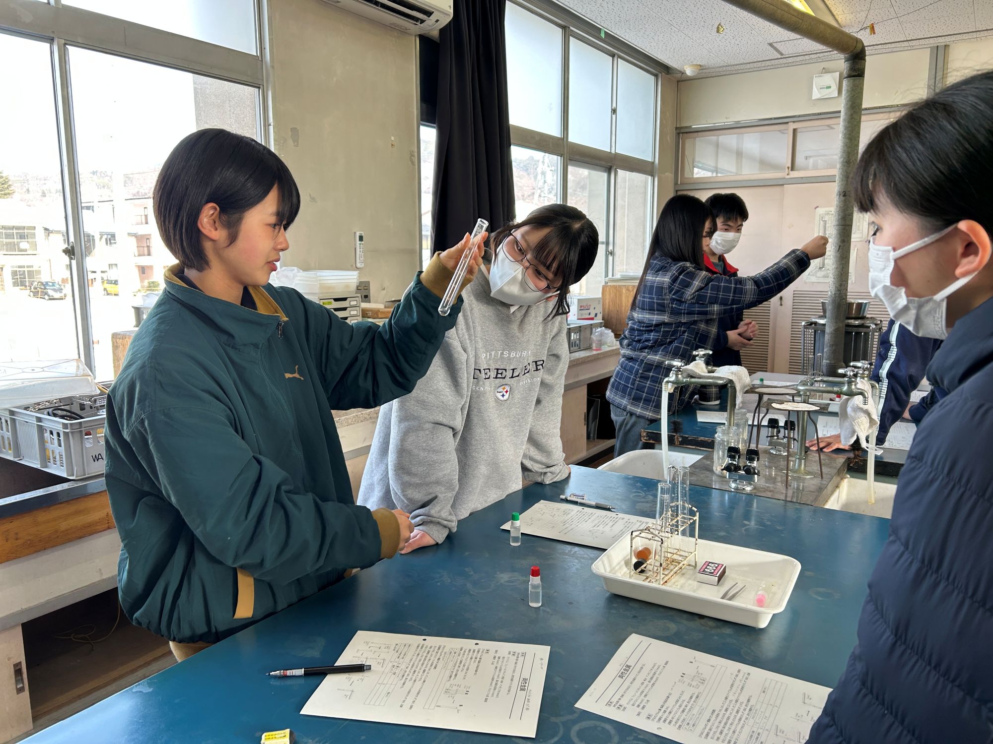 座学だけではイメージしにくい部分が多いため、実験を主体とした授業を3週間にわたり展開しました。生徒たちからは「臭いが強い実験ばかりだったが、実際に見ることでイメージしやすくなった。」「色のついた気体を初めて見た!」「実験を通して、水に溶ける気体・溶けない気体の判断ができるようになった。」等の感想があり、好評でした。
