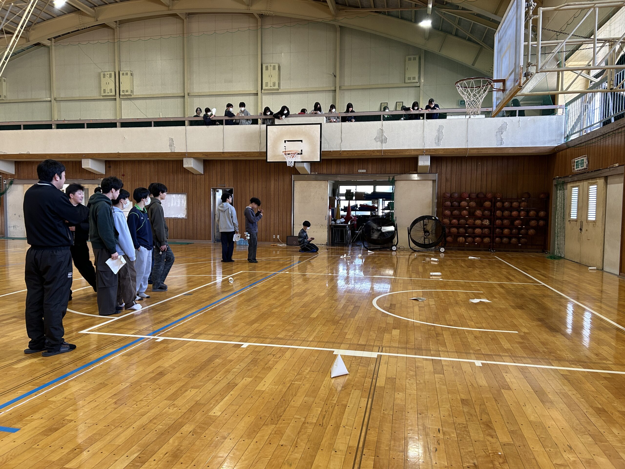 植物は動くことができないため、種子の形状を工夫することにより子孫を残してきました。実習では、どのような種子デザインにすれば生き残れるのかを自ら考え作製し、体育館で自分でデザインした種子を飛ばしました。一番遠くまで種子を飛ばせた生徒の記録は16メートル!授業内で学習したことを活かして、アクティブに学ぶことができました。